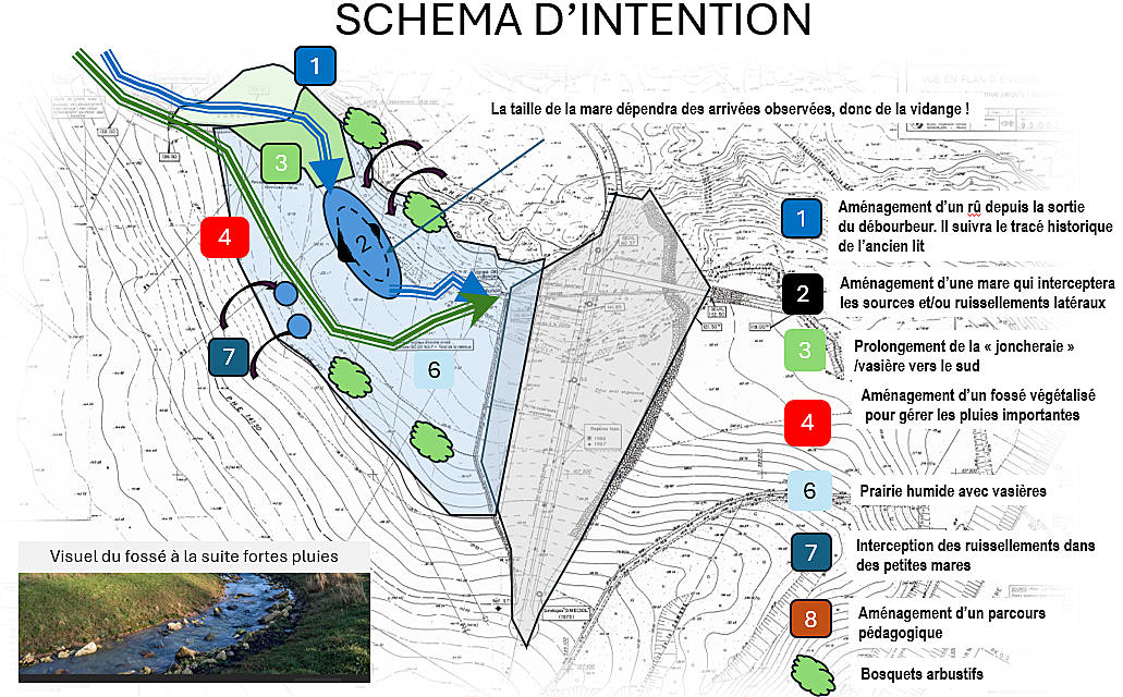 La restauration du site sur le plan écologique, avec la création de nouveaux milieux naturels (mares, zones humides), et l’adaptation du mode de gestion du barrage pour un fonctionnement plus respectueux de l’environnement